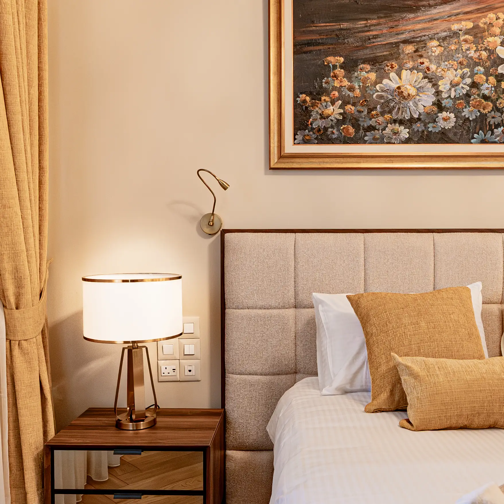 Find tranquility in the Chamomile Room, a serene sanctuary designed to embody the gentle, healing nature of chamomile flowers. Soft, muted tones of cream, pale yellow, and sage green create a calming atmosphere perfect for rest and rejuvenation. The room features natural textures, organic cotton linens, and subtle floral motifs that evoke the peaceful meadows where chamomile blooms. Every detail has been chosen to promote relaxation, from the ergonomic seating to the aromatherapy-infused environment.