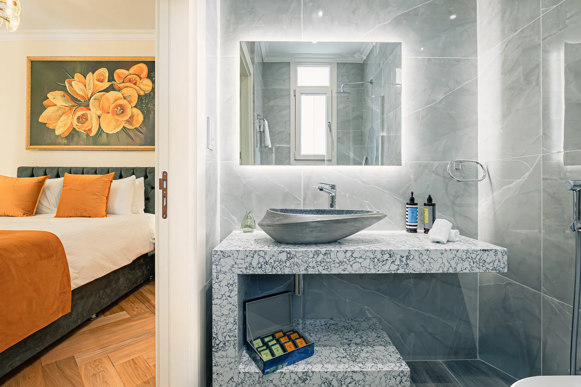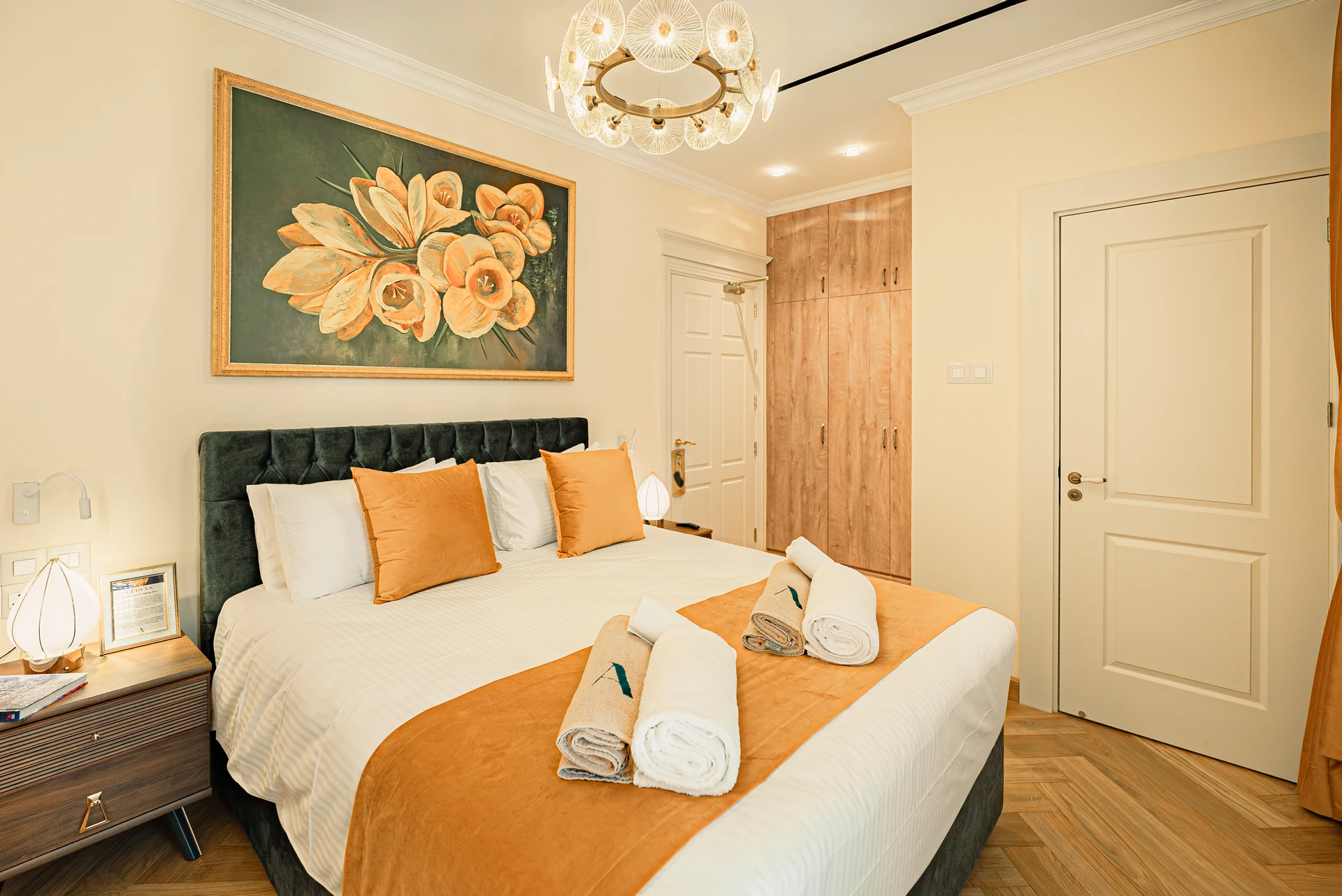 Welcome the vibrant energy of spring in the Crocus Room, inspired by the cheerful herald of the new season. This bright, optimistic space features a palette of deep purples, sunny yellows, and fresh whites that mirror the crocus flower's joyful emergence through winter snow. The room's design emphasizes renewal and fresh beginnings, with clean lines, contemporary furnishings, and bursts of color that energize and inspire. Large windows offer garden views, connecting guests with the natural world that inspired this uplifting retreat.